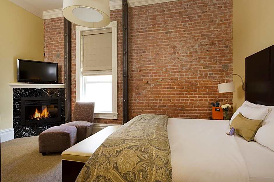 Located on the 2nd floor behind the main building, this guestroom offers studio apartment amenities that include: - Private entrance - King bed, gas fireplace, private deck - Private tile bathroom with a jetted spa bathtub & separate shower - Full kitchen and bistro table, in-room coffee and tea - 2 plush bathrobes - Flat panel television, DVD player and an iPod docking station This room is also known as, "Studio King Guestroom". Please note: There is no elevator access to this guestroom.